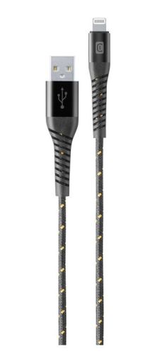 "Kabel Usb > Appel 8 Pin - 120 cm - Zwart kevlar STRONG CABLE uit de TETRAFORCE-lijn is de sterkste kabel in het Cellularline-assortiment. De flexibele kabelwartel, 30% langer en uitgerust met Snake Technology, is ultraflexibel en bestand tegen de meest extreme druk, het beschermt het meest delicate deel van de kabel door tot 30.000 buigingen te garanderen - dat is 10 keer meer dan een standaard kabel. Strong Cable is gemaakt van materialen die zijn ontworpen om maximale duurzaamheid te garanderen: metalen connectoren om schokken en druk te weerstaan, dubbel gevlochten kabelomhulsel met versterkte stof voor extreme kabelflexibiliteit en sterkte, behuizing van aluminiumlegering, zeer zuivere koperen binnenkern en DuPont&trade, Kevlar® aramidevezel. MFi-gecertificeerd voor perfecte compatibiliteit met Apple-apparaten met Lightning-connector."