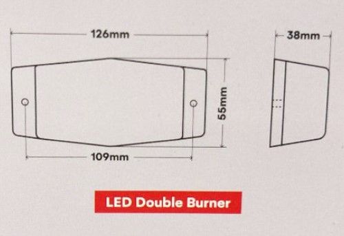 • 12-24V • E-keurmerk • Afmetingen: 126 x 55 x 38 mm • montagemaat 109 mm • Stof- en waterdicht 12-32 Volt