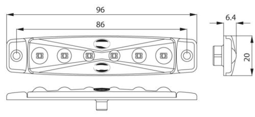 Markeerlicht 6LED oranje 24V vlak rechthoekig