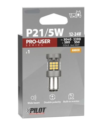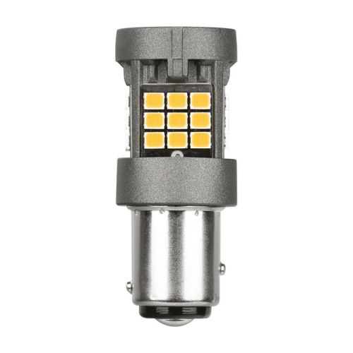 "12/24V Pro-User Serie - (P21/5W) - BAY15d - 1 stuk - Doos - Oranje - Dubbele polariteit - Ingebouwde weerstand Led-lampen van de nieuwste generatie. Ontwikkeld met behulp van Halo-Led-technologie en geminiaturiseerd ter vervanging van standaard gloeilampen met fittingen voor gebruik in of buiten de auto. • Leds met lage warmteafgifte • Zeer hoge lichtstroom (lumen), zowel koud als warm • Hoog vermogen in watt • Geschikt voor gebruik op voertuigen met een CAN-bussysteem (voorkomt dat het waarschuwingslampje aangaat) • Afmetingen: 20,5 x 48,2 mm "