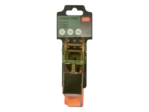 Tie-down strap with ratchet length of 5 meters and a width of 25mm. Maximum load capacity up to 500 kg. With the ratchet you can easily tighten the strap without having to use a lot of force yourself. Do not use for lifting. Delivered per piece with TÜV/GS quality mark. Tie-Down strap with ratchet and a length of 5 meters Maximum load capacity up to 500 kg Delivered per piece with TÜV/GS quality mark