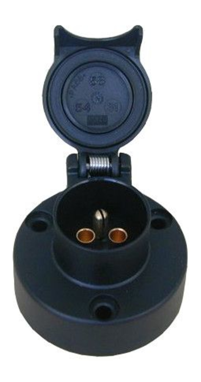 "Kunststof uitvoering, 3 polig, 24V max 25 amp. DIN 9680"