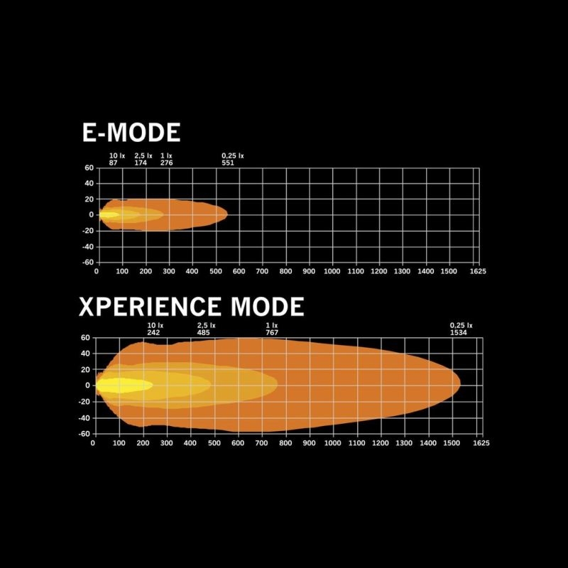 "De Siberia XPA Double Row 22" LED-lichtbalk produceert 11.500 lumen en heeft een bereik van meer dan 760 meter in de Xperience-modus. Het is een ware lichtbeleving met een lichtbundel die ver reikt. Dit betekent een verdubbeling van de lichtopbrengst ten opzichte van eerdere modellen en een zeer goede zichtbaarheid naar voren. Als u van een amberkleurige gloed houdt, hebben de XPA LED-lichtbalken een nieuw tweekleurig positielicht in amber en wit. Net als alle XP-producten beschikt hij over de Hello-functie. Met een snelle dubbele knipper van uw grootlicht geven de positielichten een Hello-signaal aan andere weggebruikers. De Siberia XPA is een duurzame toevoeging aan elk voertuig dankzij de slijtvaste materialen en de nieuwe poedercoating. Hij is IP-gecertificeerd IP68/IP69K, wat een hoge bescherming biedt tegen vuil en water. De installatie is eenvoudig dankzij de DT-4-connector en de kabel van 550 mm. De E-modus is E-goedgekeurd R149/148 met referentienummer 20. De XPA DR LED-lichtbalken vallen onder de garantie van Strands Lighting Division. 3 jaar functionele garantie. Voltage 10-32V DC Theoretical effect 200W Functions High beam, white and amber position light, separate hello function for position light Consumption specific function Xperience mode: 149W / E-mode: 22W / White position light: 16,9W / Yellow position light: 16,7W Theoretical lumen 13514lm Actual lumen E-mode: 1500lm / Xperience mode: 11500lm 1 lux @ E-mode: 276m / Xperience mode: 767m Color temperature 5700K Beam pattern Long-distance beam Beam angle 12,7° Connection DT-4PIN Cable length 550mm Color housing Black Color lens Clear Color LED´s White/amber Material bracket Aluminium alloy Material housing/chassi Aluminium Material lens Polycarbonate Length 565,4mm Depth 71,6mm Height 76mm Height including bracket 96,6mm Weight 2,6kg IP-class IP68/69K Operating temperature -35 - +60°C E-approved Yes According to regulation ECE R148,R149 Reference number 20 EMC ECE R10"