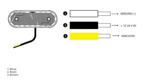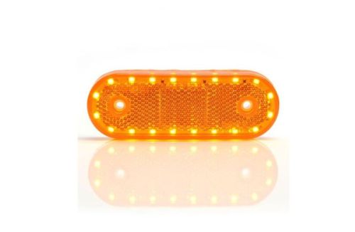 Type of lamp LED Type of LED OSRAM Voltage (V DC) 12-24V DC IP-class 66/68 Colour housing Black Colour lens Amber Position light No Connection Cable Material bracket Polycarbonate Material housing/chassi Polycarbonate Material lens Polycarbonate Length (mm) 114 Depth (mm) 25 Height (mm) 40 CC (mm) 30.75 Operating temperature -35°C – +45°C ADR-approved No E-approved Yes According to regulation ECE R3.R91 EMC ECE R10