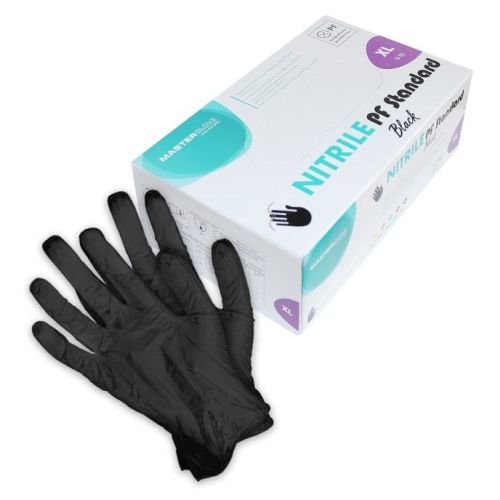 "Zwarte nitrilhandschoenen - poedervrij, maat L. Ze passen zowel rechts als links getextureerd aan de buitenkant van de hand en vingers, waardoor het wegglijden van vastgehouden voorwerpen wordt voorkomen en de grip wordt vergemakkelijkt, terwijl het een zeer goed gevoel en behendigheid biedt beschermen tegen het binnendringen van micro-organismen goedgekeurd voor contact met voedsel ideaal voor werkplaatsen, verfwinkels, tattooshops, schoonheidssalons, etc. verpakt per 100 stuks in een doos voldoet aan de EN455- en EN374-2-normen"
