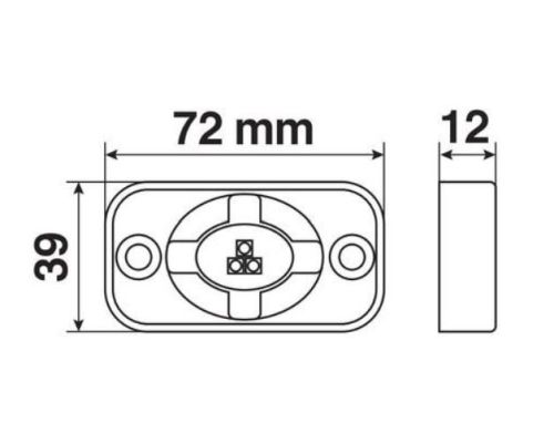 "•Vermogen: 15W •Lichtsterkte: 1260 lm •Spanning: 12V-24V •Waterbestendig: IP 67 •Verbruik: 0,75A-12V 0,38-24V •Leds: 3pcs*3w OSRAM LED •Kleur: Zwart gecoat •Kleurtemperatuur licht: 6000K •Materiaal: Gegoten aluminium •Lens materiaal: Polycarbonaat •Bevestigings- materiaal: Stainless Steel •Stralingshoek: Led Breedstraler (120°) •Certificering: ECE R10 •Afmetingen: H 39mm x B 72mm x D 12mm "