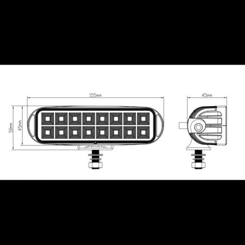 • 12V/24V • 1732 lumen • 24W • 16 leds • 155 x 50 mm • PC-lens / aluminium behuizing • Kabel 25cm • Werklamp FLOOD-light • ECE R10
