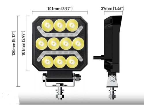 "• Wit positielicht • Aluminium behuizing • 10 LED's • 1500Lumen • Draad 250 mm • 15W • IP67 • 12V/24V • ECE R10 • 10,1x10,1x3,65cm"
