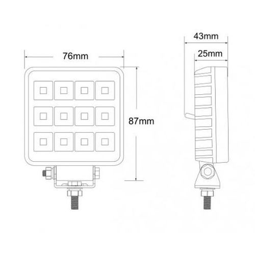 "10-30V / 12LED / 12W / IP67 / focus beam / 6000K / 1800 Lumen / PMMA lens / Aluminium behuizing / kabel 25cm / ECE R10 / met schakelaar / 7,6cm x 8,7cm x 2,5cm "
