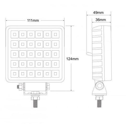 "10-30V / 30LED / 30W / IP67 / focus flood / 6000K / 3800 Lumen / PS lens / Aluminium behuizing / kabel 25cm / ECE R10 / met schakelaar / 11,1cm x 12,4cm x 3,6cm "