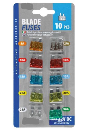 "Set 10 assorti steekzekeringen, 12/32V 1x 5A - 1x 7,5A - 2x 10A - 2x 15A - 2x 20A - 1x 25A - 1x 30A"