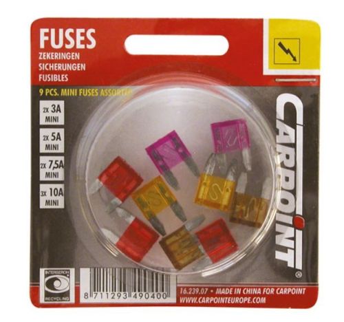 Zekeringset steek mini 3A->10A (9stuks)