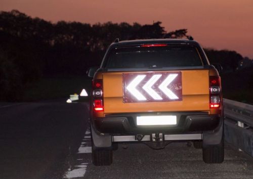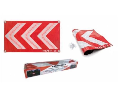 "•Nouvel accessoire de Sécurité Routière en complément de la loi R416.19 du Code de la route •Bandeau LED de signalisation 69 x 40 cm pour automobilistes en cas de panne ou d'accident •Visible à plus de 200 mètres grâce à son système de 3 grandes flèches (chevrons) blanches réfléchissantes (classe 2) et à son équipement de 78 leds rouges haute définition •Pose rapide et facile, maintien par 4 ventouses réversibles et/ou aimants •Souple et léger, prend peu de place •Fonctionne avec 3 piles AA 1,5V LR06 (NON FOURNIES) •Allumage par bouton poussoir •Fabriqué en FranceNorme CE •Garantie 2 ans"
