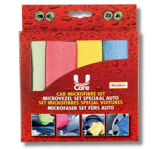 Ces quatre chiffons en microfibre ont été spécialement sélectionnés pour l'entretien des véhicules. Leurs différentes techniques de fabrication et l'utilisation de microfibres de haute qualité garantissent que chaque chiffon est parfaitement adapté à une application spécifique.
