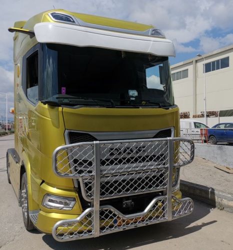 "• Pare-soleil allongé pour le DAF XG+ 2021-> • 30 % plus profond que l'original • Les supports sont collés au pare-soleil, donc aucun trou de boulon n'est visible • Aspect original • Ajustement parfait • Finition fantastique • Faites attention! Mesurez toujours le produit avant de pulvériser en couleur. • Base blanche en polyester (peut être pulvérisée dans la couleur désirée)/Non transparent Ce produit nécessite un pré-traitement en un apprêt."