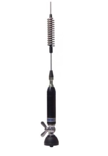 • 79cm • 15 Watts (CW) continuous • 150 Watts (CW) short time • Type: Base loaded • Radiation: Omnidirectional • Polarization: Linear vertical • Frequency range: 27 ... 28.5 MHz Tunable • 4m cable included / fiche (our ref. 4840) not included