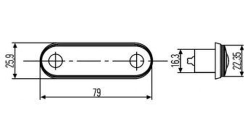 6x79x22mm | 12V/24V | 0.5W | 0.5m Cable Center distance 58mm | Flush mount 44x20 Suitable for mounting in Kelsa Bars