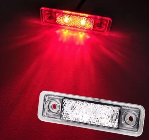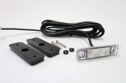 "RED / 1 piece LEDSON Astral side marker with two strong LEDs behind a diamond-pattern clear glass gives a frosted light for a stylish & distinctive look! E-marked R1 (E6) and thus approved as side marker. No metal = no rust while it is of course IP67 graded which makes it waterproof. Neither requires a recessed mounting when assembling. 2 different gaskets are included: one for flat mounting and one for pipe mounting. Specifikations: Two pcs LED/dioder Diamond pattern for a frosted light IP67 waterproof, stainless and shock resistant Voltage: 12V och 24V E marked 02 R1 1055 E6 2 x gaskets and screws included (flat and tube mounting) Measure: Length: 79 mm Width: 22,2 mm Height: 6,5 mm Cable: 3 m Measure(recessed): Length: 72,4 mm Width: 17,4 mm NOTE! Should only be tightened by hand."