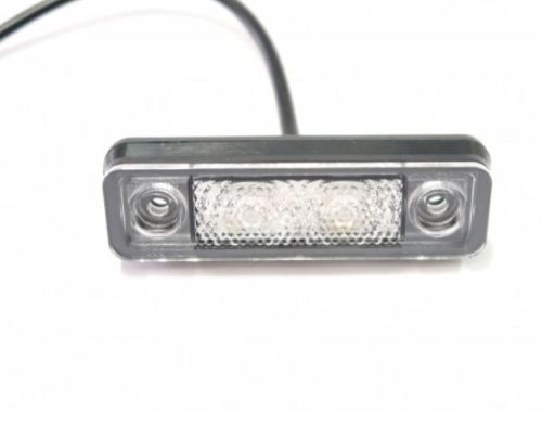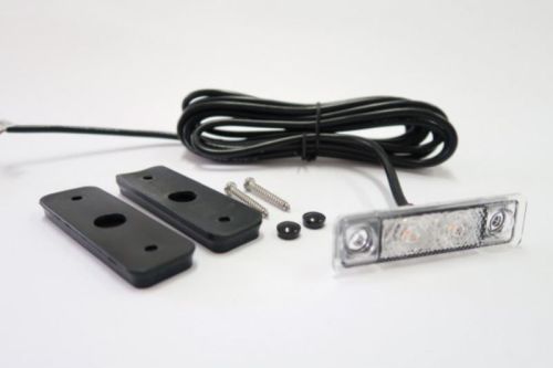 "Cold white / 1 piece LEDSON Astral side marker with two strong LEDs behind a diamond-pattern clear glass gives a frosted light for a stylish & distinctive look! E-marked R1 (E6) and thus approved as side marker. No metal = no rust while it is of course IP67 graded which makes it waterproof. Neither requires a recessed mounting when assembling. 2 different gaskets are included: one for flat mounting and one for pipe mounting. Specifikations: Two pcs LED/dioder Diamond pattern for a frosted light IP67 waterproof, stainless and shock resistant Voltage: 12V och 24V E marked 02 R1 1055 E6 2 x gaskets and screws included (flat and tube mounting) Measure: Length: 79 mm Width: 22,2 mm Height: 6,5 mm Cable: 3 m Measure(recessed): Length: 72,4 mm Width: 17,4 mm NOTE! Should only be tightened by hand."