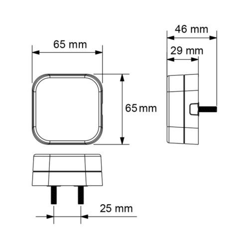 This LED marker light has a specially designed lens for an innovative light image in the dark. The waterproof configuration can withstand challenging conditions. The durable SMD LEDs resist vibrations and other external impacts. This light has a compact 65mm x 65mm design. -ECE R10 - IP67 - 24 V - Orange - Side marking | Reflector - 500mm cable - Open cable end 65mm x 65mm x 29mm