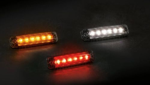 "Embrace the dark style with these Dark-series SLIM LED marker lights. The marker light is equipped with 6 powerful LEDs, providing a sharp and clear illumination. Available in yellow/orange, red, and white light. Suitable for both 12V and 24V systems, making it ideal for a wide range of vehicles. Designed to withstand challenging road conditions and ensure long-lasting performance. • Consumption 12V / 24V: 0,05A • Operating temperature: – 40°C to +55°C • Voltage: 12-36V DC • 10,2cm x 2,56cm x 1,2cm"