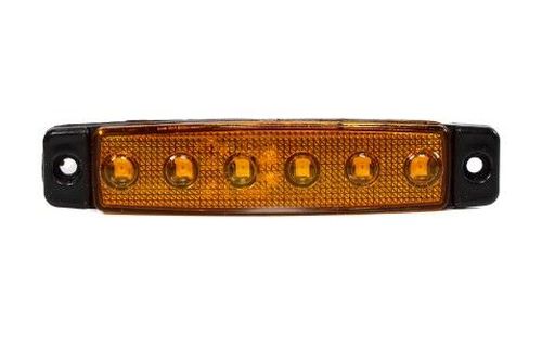 12-24 Volts 3 Watt (6 x 0.5W) 6 SMD LEDs Amber PMMA Lens ABS Housing Surface Mount 96*20*8mm ECE Approved R3/R10/R91 Operating Temperature -40°C to +65°C