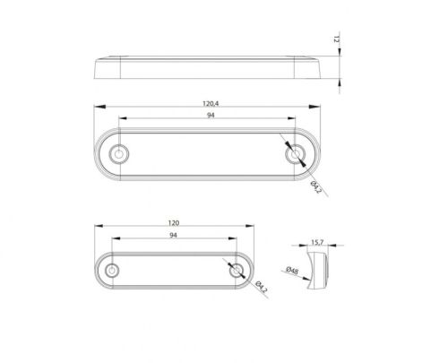 "Ultra thin mounting / Dark smoked lens / L12cmxW2,7cmxD1,3cm / IP68 / 9-36V"
