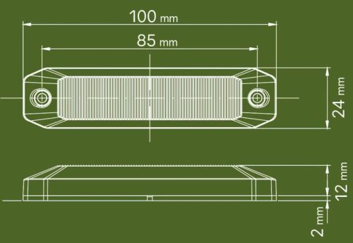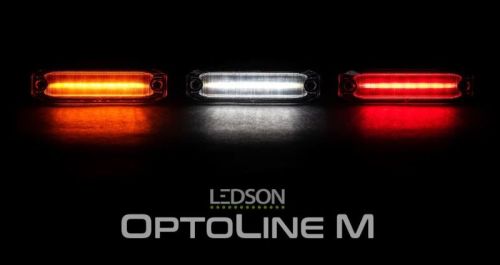 "Optoline M - The future is now! Optoline M position light & side marker with six strong LEDs provides a beautiful fiber optic light. Easy Fit: A simple installation / no recess required - installed without having to saw rectangular holes in the vehicle! Gasket for flat surface included. Specifications: Fiber optic light with a modern look on your vehicle SMOKED lens 6 pcs LED with xenon white, red or orange light IP67 classification - waterproof, dustproof, rustproof and shockproof Voltage: 9-32V E-marked as side marker / position light according to ECE R148 Gasket for flat surface included Measure: Length: 100 mm Width: 24 mm Depth: 12 mm Hole spacing: 85 mm (cc) Cable: 2 meters "