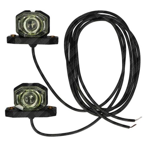 "2 PIECES !! Marker light LED 24V. Plastic housing, yellow lens unit made of impact-resistant polycarbonate. With cable 1.25 m. TÜV/ADR/GGVS approved. IP68.Length: 100 mmWidth: _46 mmHeight: _59 mmCentre-to-centre distance: _76 mmBolts: M6 "