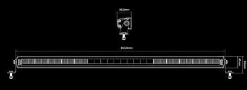 Type of lamp LED Voltage (V DC) 10-40V DC Theoretical lumen 12000 Actual lumen 8039 1 LUX @ m 520 IP-class IP67/69K Colour housing Black Colour lens Clear Colour LED´s White Beam pattern Combo Position light Yes. white and amber Connection DT-4 Cable length (mm) 500 Material bracket Stainless steel Material housing/chassi Aluminium Material lens Polycarbonate Length (mm) 813.6 Depth (mm) 55.5 Height (mm) 45 Height including bracket (mm) 65 Operating temperature -20°C – +45°C ADR-approved No E-approved Yes According to regulation ECE R112 Reference number 50 EMC ECE R10