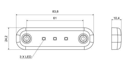Markeerlamp plat 3LED wit 12V/24V (L8,4cm)
