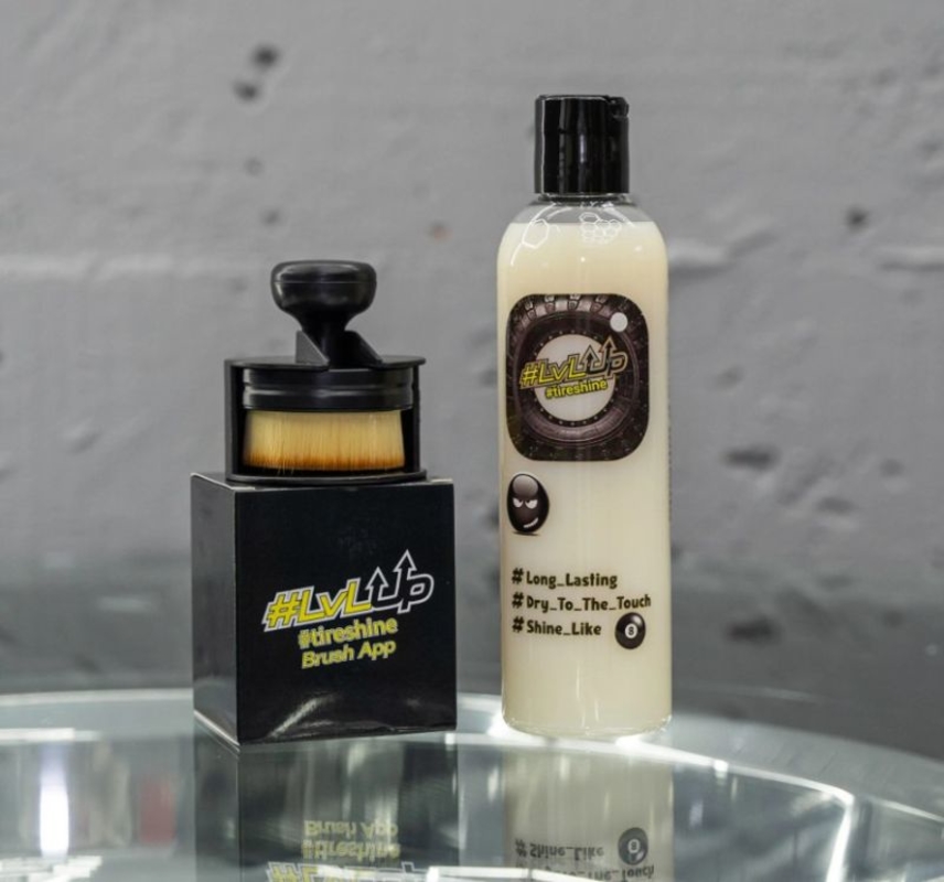 "#LvLUp is een bandendressing die uw banden tot leven brengt. Na het aanbrengen van dit product blijven uw banden langdurig in een zwarte wetlook, bieden ze bescherming tegen UV-schade en heeft u altijd het gevoel alsof u een paar gloednieuwe glimmende schoenen draagt. Eén toepassing van #LvLUp Tireshine gaat minstens een maand mee door regen en verschillende wasbeurten !!! Met 250ml kun je minimaal 10/15 keer je banden inwrijven van je auto (afhankelijk van de maat van de banden) In de doos vind je: • 250 ml product • De applicator voor het aanbrengen op je banden • Een Sticker van #LVLUp"