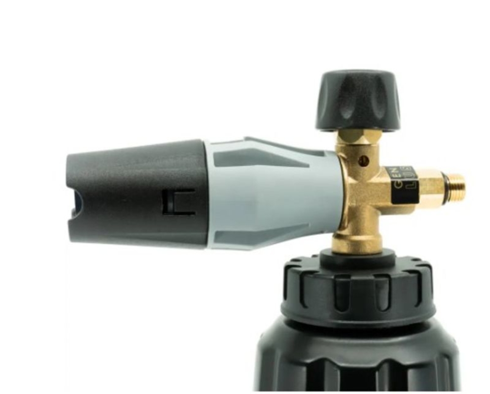 Met deze hoogwaardige schuimlans creëer je op een eenvoudige wijze stevige schuim. Geschikt voor intensief gebruik. De schuimlans is voorzien van een draaibare spuitkop voor het aanpassen van de straalbreedte. Met de regelknop op de bovenzijde kun je de gewenste hoeveelheid schuim instellen. • Inhoud: 1L • Max. pressure: 220Bar - 3200PSI • Max. flow: 20L/min • Max. temperature: 60°C - 140°F